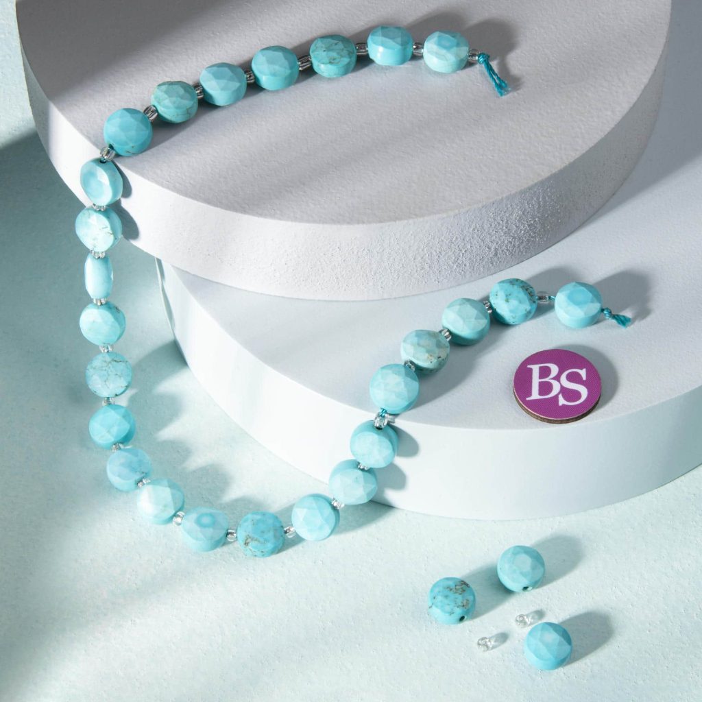 Turquoise Tibetan Stone 10mm Lentil Sparkling Faceted