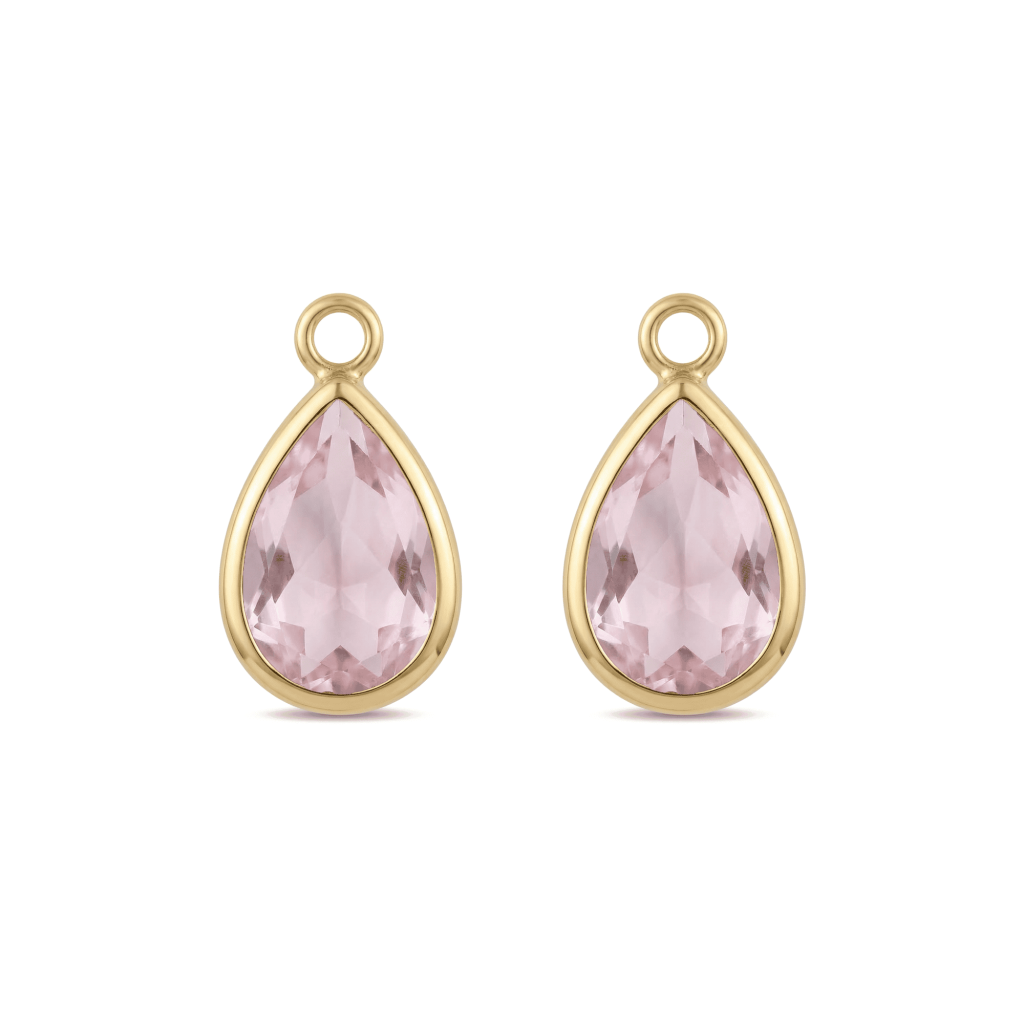 Pink Teardrop Crystal Charm – 8×14mm 18K Gold Plated