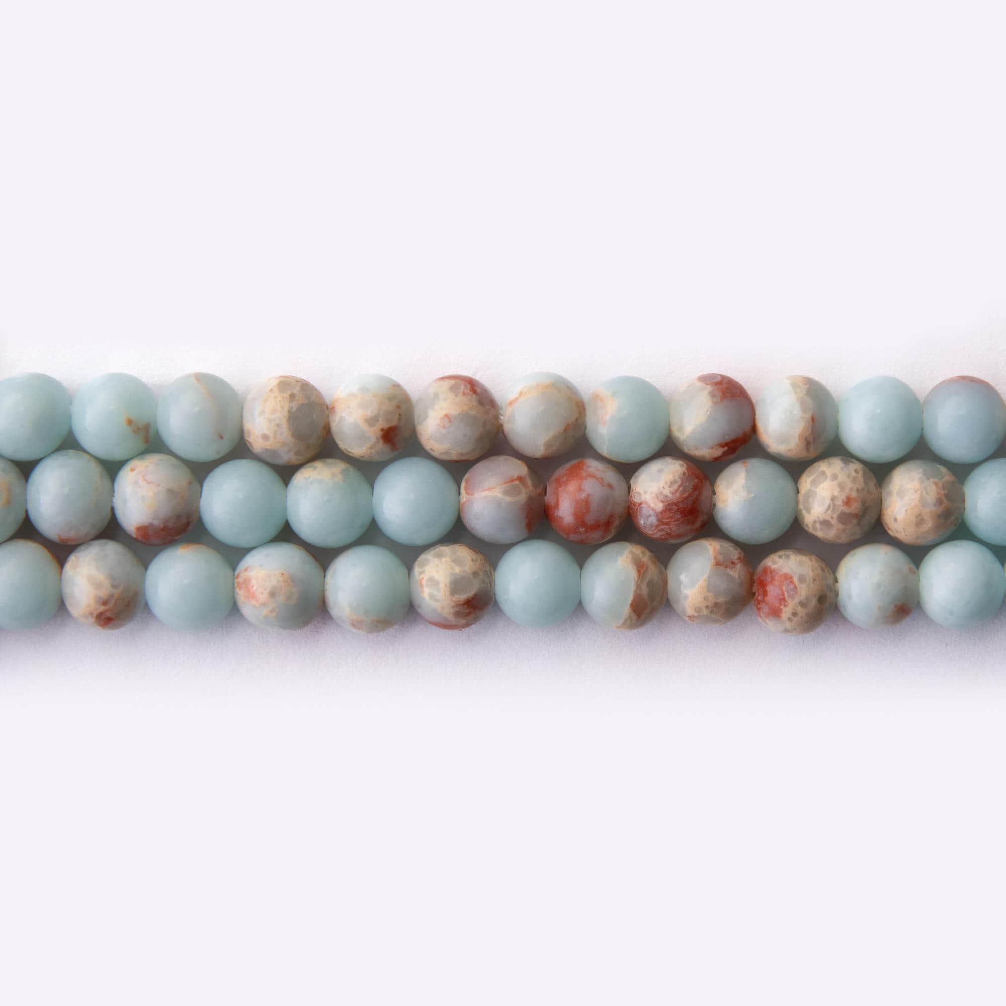 The Blue Imperial Jasper Natural Stone 6mm Round Polished beads are a stunning choice for jewelry makers seeking natural gemstones with vibrant color and versatile appeal. These 6mm round beads feature a smooth, polished surface that highlights a beautiful blend of blue, cream, and red tones, making them perfect for creating eye-catching necklaces, bracelets, earrings, and other accessories. Their natural stone composition and polished finish provide durability and elegance, ideal for both casual and sophisticated designs.