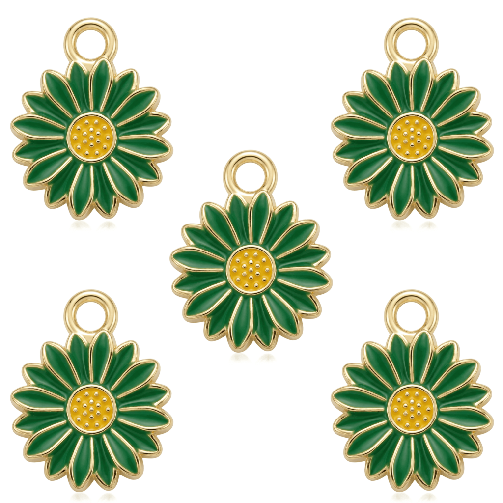 Green Fresh Flower Enamel Charm – 13×17mm Gold Plated